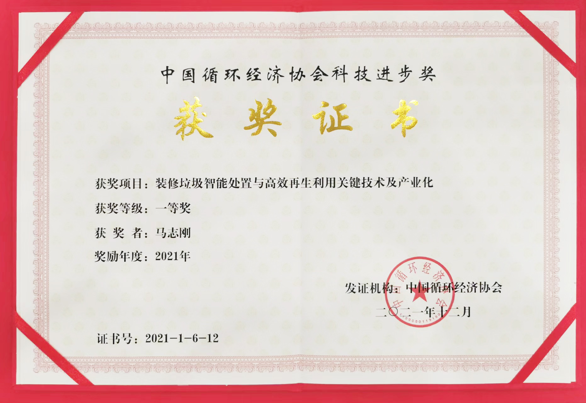 On July 28, 2022, at the 2021 China Circular Economy Association Science and Technology Award Ceremony, the "Key Technologies and Industrialization of Intelligent Disposal and Efficient Recycling of Decoration Waste" project participated in the research and development of Goldenma (Parent company of Vancen ) stood out from more than 90 technological achievements with its leading advantages in scientific and technological innovation, and won the honor of "First Prize of Science and Technology of China Circular Economy Association"!